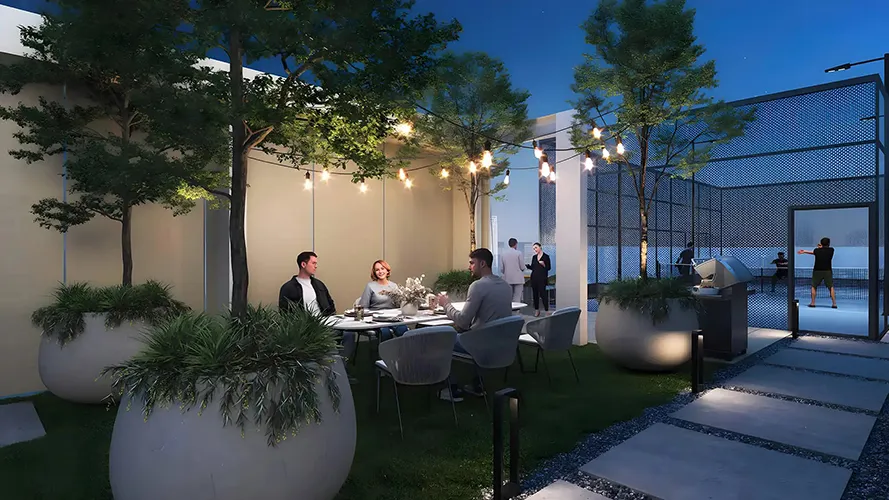 The residences are thoughtfully planned to maximize space, light, and views. Panoramic windows offer sweeping vistas of Dubai's cityscape and the peaceful JVC community, while interiors reflect a contemporary ambiance through clean lines, elegant finishes, and functional layouts. Residents are welcomed by a grand double-height lobby adorned with high-end materials and artistic elements that set the tone for an elevated lifestyle. The tower also incorporates retail outlets, offering convenience and vibrancy within the community.