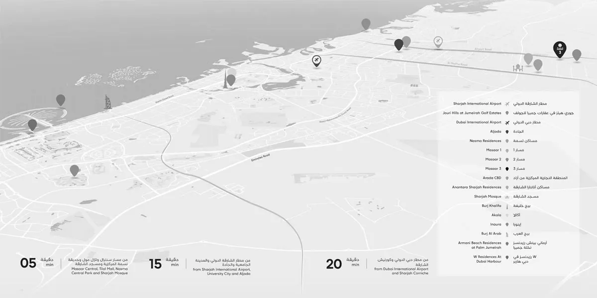 - Close proximity to Sharjah International Airport, University City, and Aljada