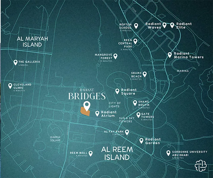Radiant Bridges at Al Reem Island by Radiant Real Estate redefines contemporary urban living with a visionary mixed-use development set in the vibrant City of Lights, Abu Dhabi. This landmark project seamlessly integrates residential, commercial, and retail spaces across three architecturally striking towers, offering a dynamic environment where life, work, and leisure coexist effortlessly. Featuring a premium selection of studio to 3-bedroom apartments and spacious duplexes with stunning canal and skyline views, the development is designed to deliver both comfort and connectivity within a sophisticated waterfront setting.