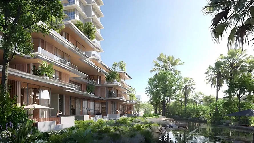 Architecturally, the tower reflects a contemporary design approach with clean lines and expansive glass façades that allow abundant natural light and uninterrupted views of lakes and island landscapes. Interiors feature neutral color palettes, expansive layouts, seamless indoor-outdoor flow, and high-quality finishes. Residents benefit from wellness- and leisure-focused amenities, landscaped pathways, jogging tracks, and serene waterfront spaces, with handover scheduled for June 2030, reinforcing its positioning as a premium, tranquil, nature-integrated residential living destination.